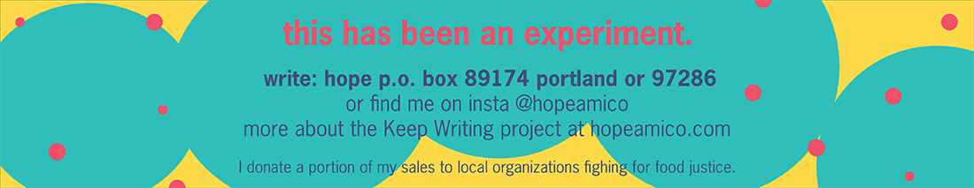 Do I deserve this? This time to work, to do whatever I need that is part of the process?2 I came home rested. How stupid that we constantly have to prove our worth, not just as artists or writers, but as parents, friends, children, teachers, people. So let me say, unequivocally: yes, you deserve this. If you are near enough to head to the Washington coast, apply for a residency at Sou’wester. Go for arts, week, teach a class, or go alone. If you need time and space to work, make time and space. Apply and get rejected and apply again. Make your own residency anywhere you can. You don’t have to prove your worth. I know that we have to balance our creative time with our jobs and families, but keep making. They are intimidated by our brilliance.